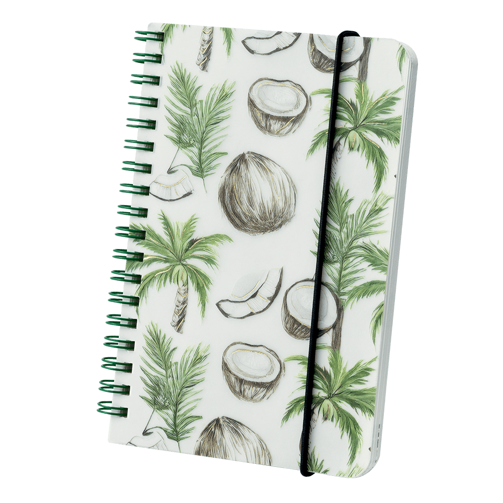 - Special Features: UV printing, foil stamped details, round corners, elastic band, copper color spiral
