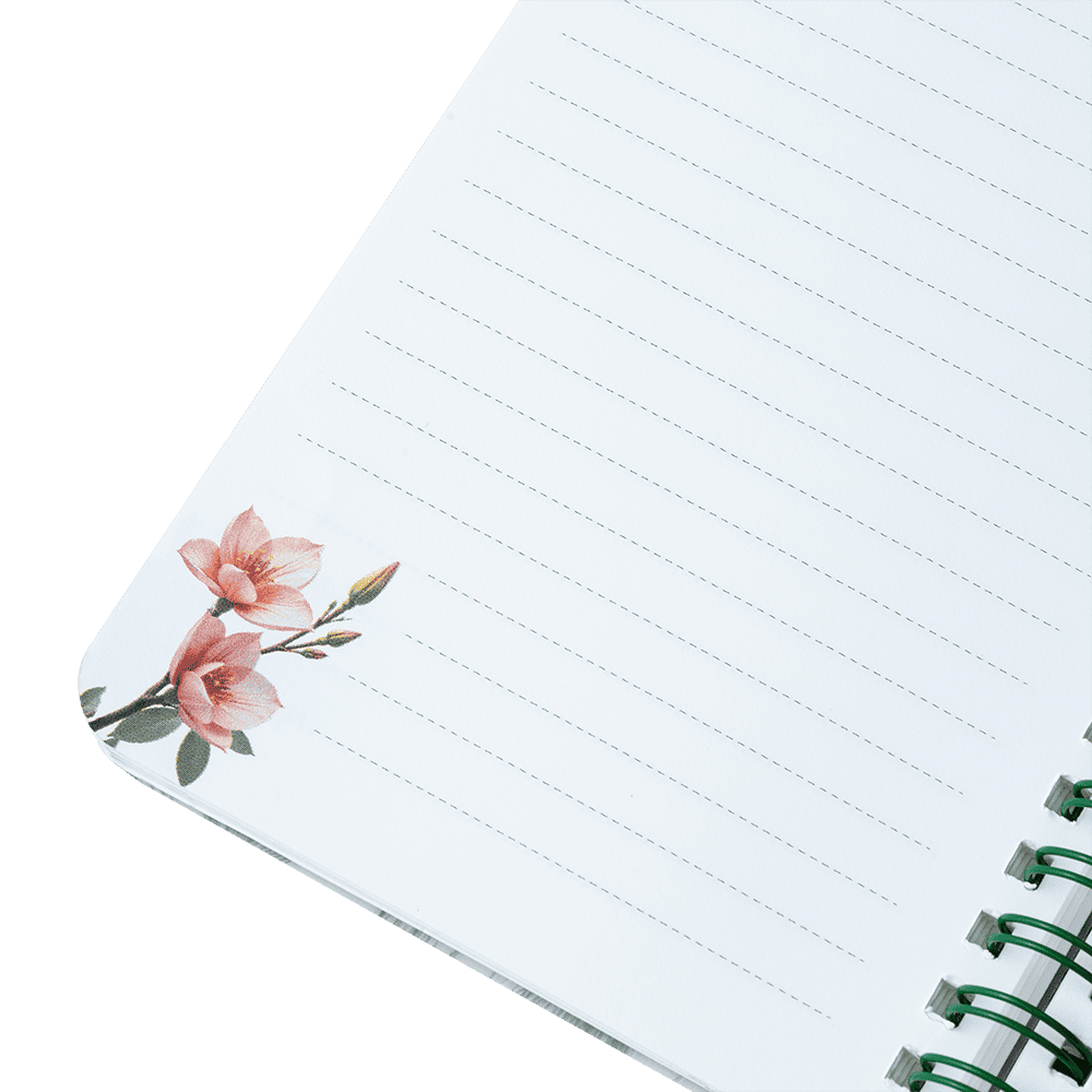 The copper-colored spiral binding ensures smooth page turns and durability, while the ruled inner pages on premium cream shade paper provide a comfortable writing surface that’s easy on the eyes. Finished with thoughtful details like round corners and an elastic band, this notebook blends beauty with practicality for daily use.