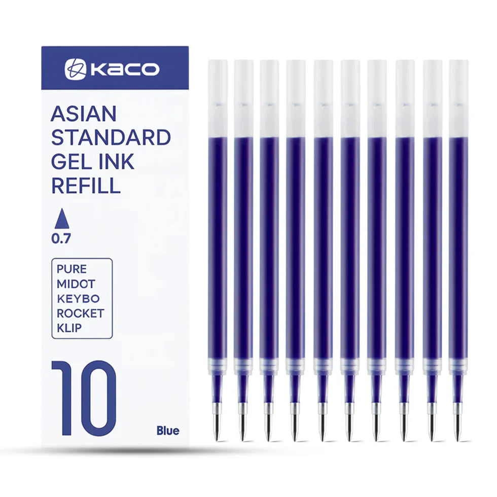 -10 × Kaco Pure 0.7mm Gel Pen Refills (Blue or Black)