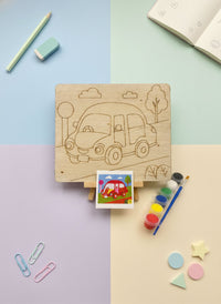 The Kids Canvas Wooden Pad is a fun and creative DIY painting activity set made for young artists. Each pad features a wooden base with an engraved outline, ready to be painted using the included colors and brush. With a handy size of 18 cm × 14 cm, kids can easily paint and display their artwork using the included wooden stand. A perfect blend of art, learning, and play!