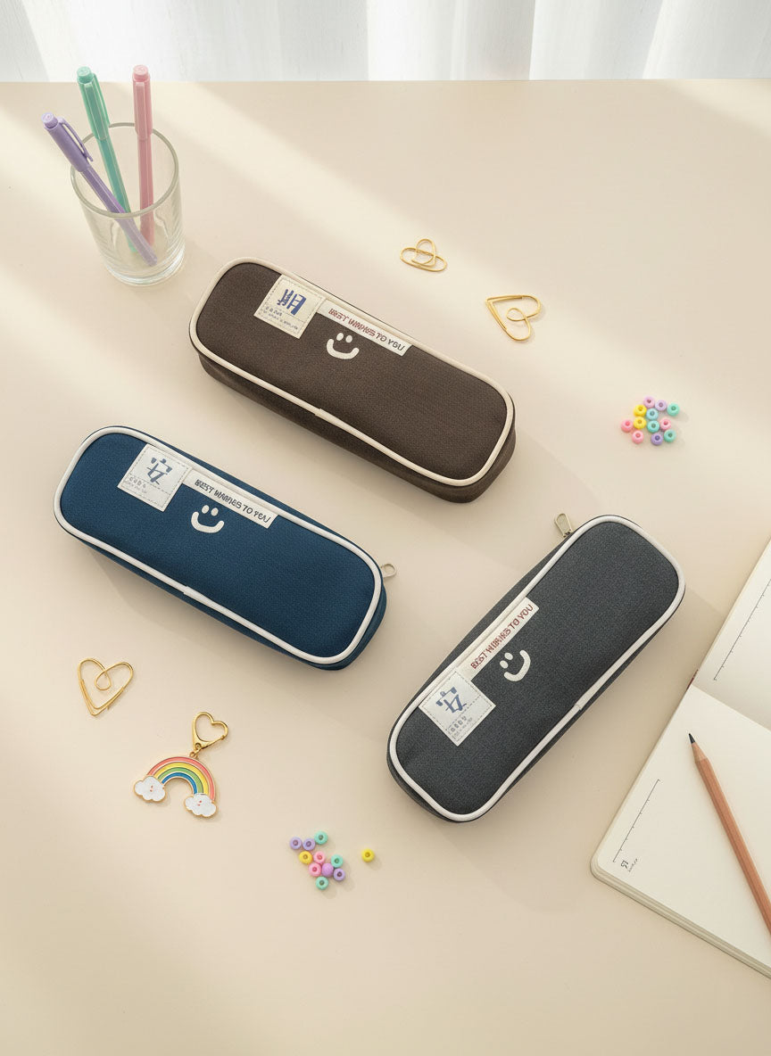 A sleek and practical Smiley Design Pencil Box with a motivational “Best Wishes to You” message. Made from durable material with a compact shape, this pencil box keeps your stationery organized while adding a modern, cheerful touch to your desk.